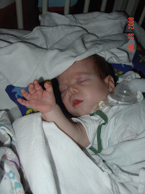 We're finally home, safe and sound, and under one roof!!! We arrived home to baloons and welcome home banners. Chase is sleeping right here beside me in his bumblebee swing :) Last night with Chase went even better than the first. We met several people the last couple days who we will be following up with over the next several months/years. We were able to get some home nursing for a little while, so we'll have a nurse come over 3 hours a day to give us some rest. Which is good b/c I feel like I'm going cross eyed just typing this blog from lack of sleep :) But I'm not complaining, this is what it's all about and I love it. And once we get settled in we're having a BIG ice cream social with 100 different toppings for each day Chase was in the hospital, and everyone's invited!!! Thanks to everyone once again for all of the thoughts and prayers!!! We will forever be grateful!!! I can't wait for all of you to meet Chase!!! And just as a disclaimer, you will likely see many more typos and gramatically incorrect phrases, but now I have an excuse. :)